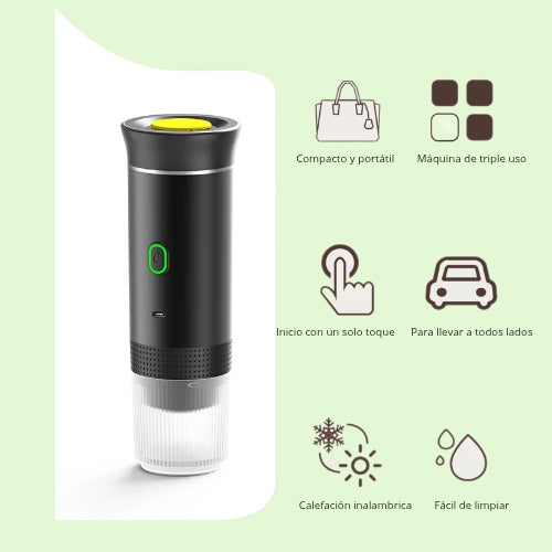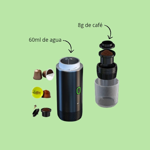 - Máquina de café espresso portátil 3 en 1 con compartimento para café molido, y cápsulas pequeñas y grandes.